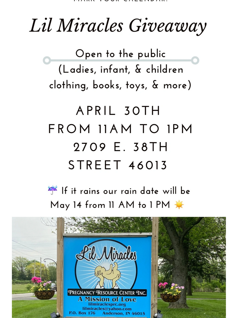 A Benefit for Lil Miracles Pregnancy Resource Center Inc. A Mission of Love helping families in and around Madison County, Indiana.