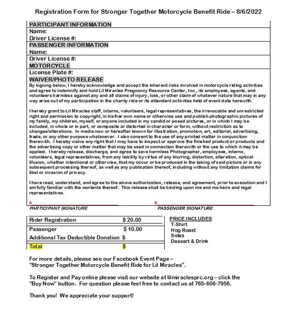 A Road Rally Benefit for Lil Miracles Pregnancy Resource Center, Inc.